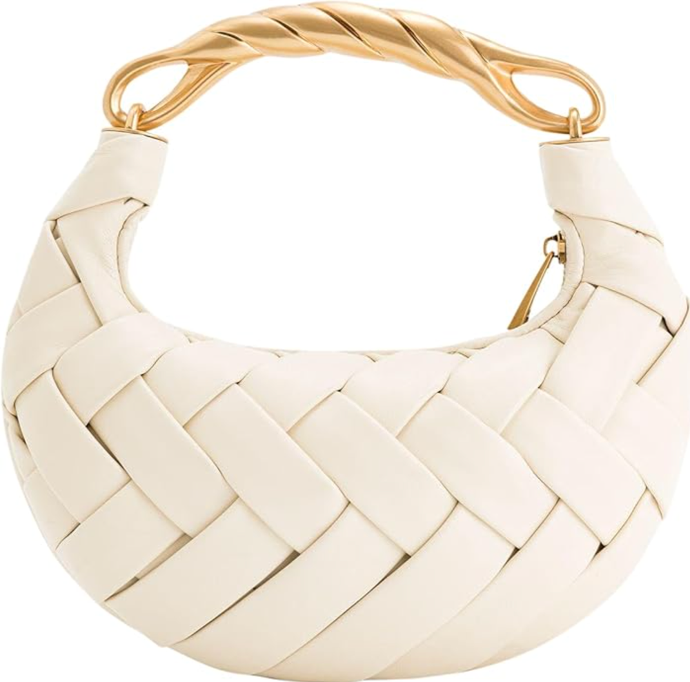 The oversized weave on this bag is a bold take on the woven trend, making it a true statement piece for spring. It’s designed for those who want their accessories to be the focal point of their outfit, offering a modern, high-fashion vibe.