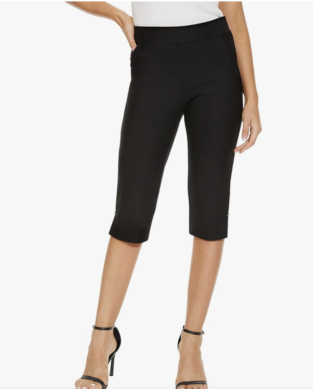 Why this works: Stretch fabrics and simple necklines. A bodysuit stays tucked no matter how many times you get in and out of the car, and a ribbed tank adds texture without the heat.